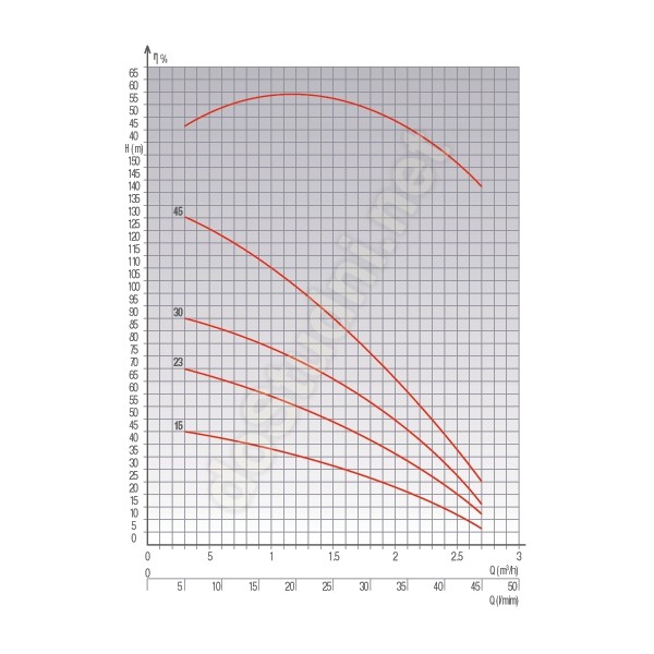 Wirniki pompy wykonane są z najwyżeszej jakości norylu posiadającego certyfikat dopuszczający do tłoczenia pitnej wody a dyfuzory z samosmarującego acetal-u;